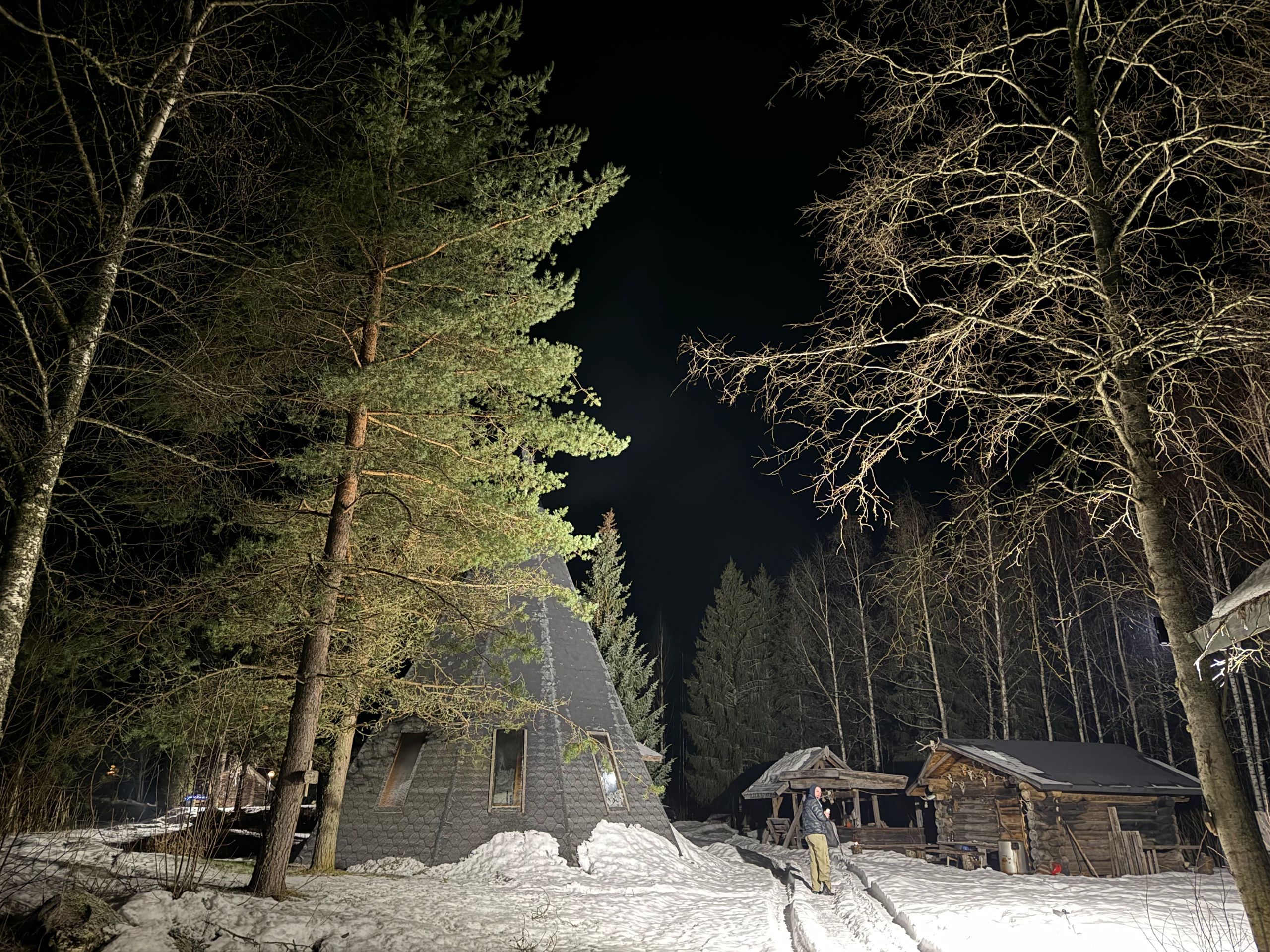 OPEN SAUNA MAPNaisten pukuhuone on yleisillä vuoroilla pikkusaunassa, joka on lämmin tila, kun sauna on lämmitetty. Miesten pukuhuone on isossa kylmässä kodassa, jonka keskellä nuotio tuomassa edes hieman lämpöä. Uiminen tapahtuu kolmen lähteen lammessa. Suihkuja ei ole, mutta saunan edustalla on kuumavesipata, jonka vettä voi sekoittaa pesuvadissa lumeen. Saunan jälkeen voi nauttia pirtissä kahvia, mehua ja pikkuleipiä.