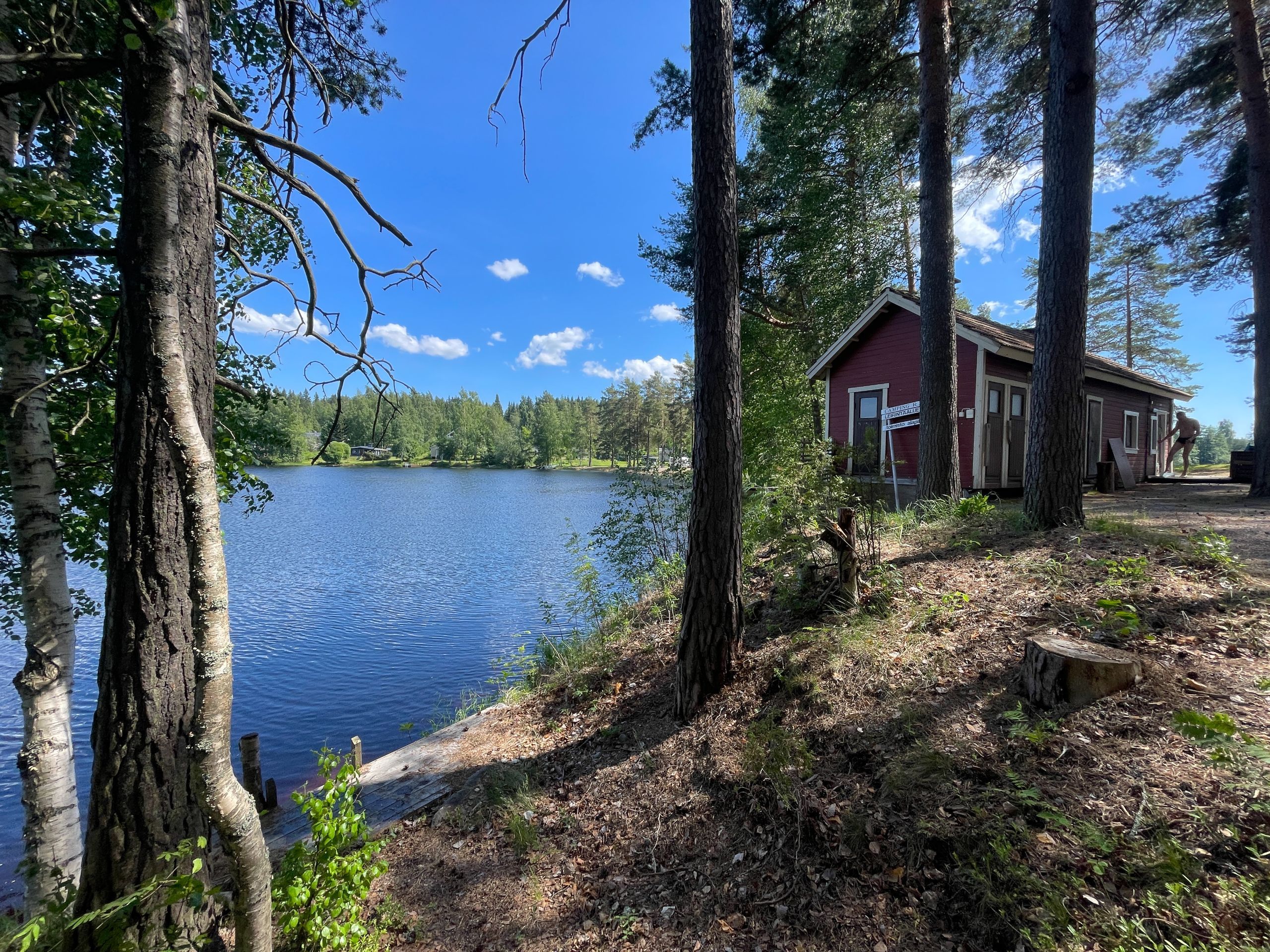 OPEN SAUNA MAPKaksi saunaa: sähkölämmitteinen ja puulämmitteinen. Puulämmitteinen on sympaattinen vanha pieni hirsimökki. Sähkösauna on uudempi, eikä sen kiuas oikein jaksanut lämmittää saunaa. Sähkösaunalla on kunnollinen laituri, mutta puusaunalla vain portaat veteen. Ranta on hiekkapohjainen. Sähkösaunalla on suihkut, mutta puusaunalla pitää peseytyä saunassa vatia käyttäen.