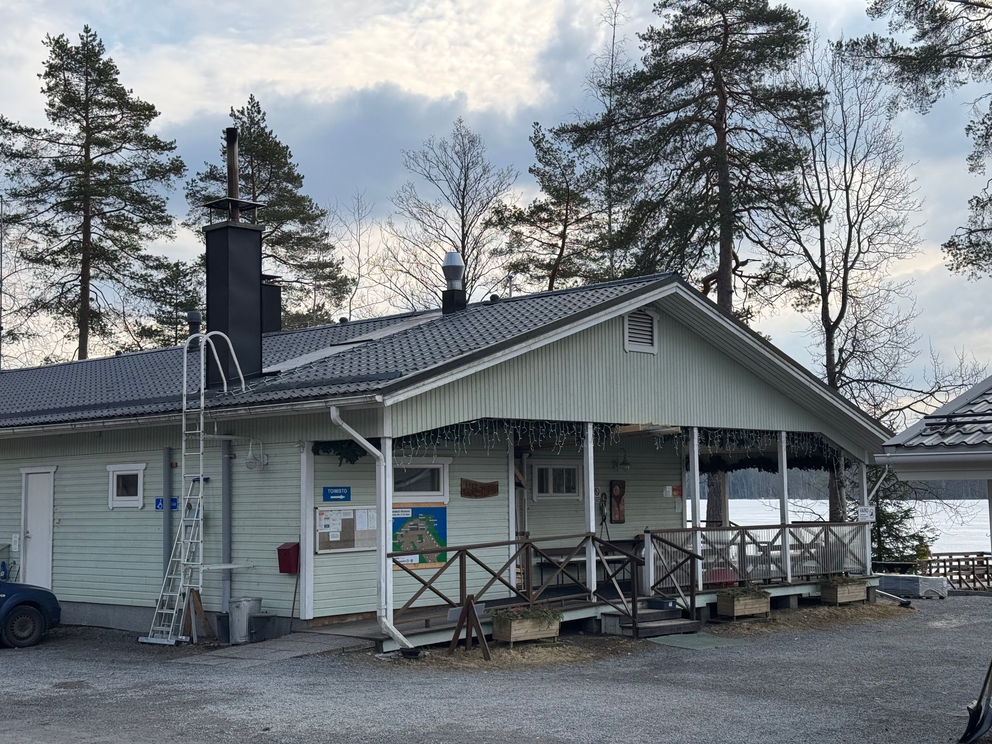 OPEN SAUNA MAPNokian invalidien puilla lämpenevä yleinen sauna. Miellyttävä sauna, jossa järeästä kiukaasta riittää lämpöä talvellakin. Hyvä laituri uimiseen myös talvella. Erilliset pukuhuoneet ja suihkut miehille ja naisille. Kesäisin käytössä on 26 hengen kesäsauna. Kiuas on todella tehokas ja sauna kuuma. Kuumuus ei haittaisi, mutta jatkuva löylyn heittäminen tekee saunassa olemisen tukalaksi. Edes lapsia ei huomioida, vaan itsekkäästi mätetään löylyä vain ja ainoastaan oman nahan polttamiseksi. Talvisin on kerran viikossa miedompien löylyjen vuoro.
