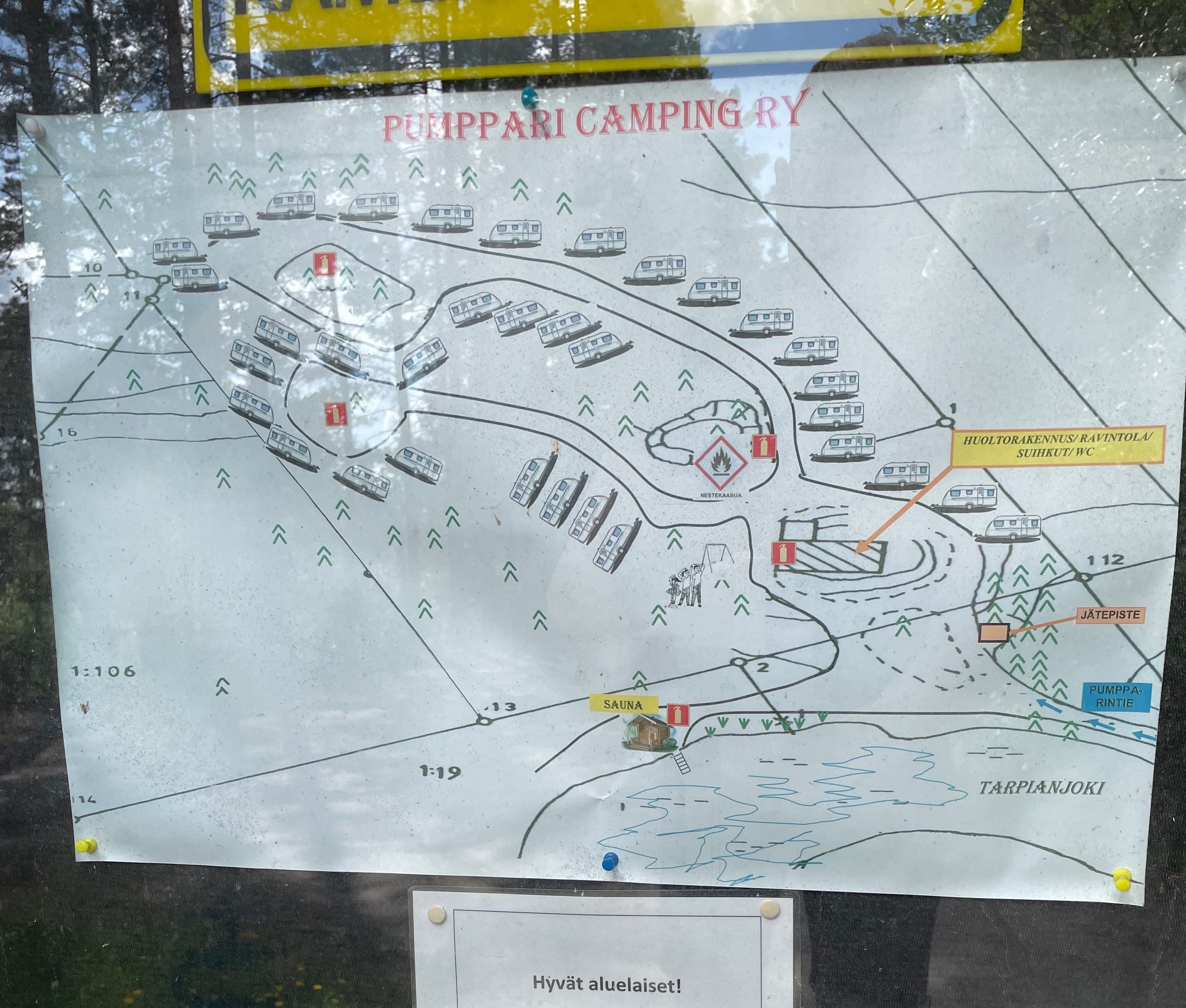 OPEN SAUNA MAPPumppari Camping ry on pieni ja kodikas caravan-alue Akaassa, Viialan taajamassa, Tarpianjoen rannalla.