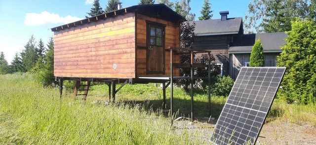 OPEN SAUNA MAPSiirtosauna jalkalavalla. Pellettilämmitteinen kiuas. Erinomainen löylytasku. Laudetilaa 14 hengelle tiivistäen enemmällekin. Saunatuvan puolella kiukaan pellettipoltin, jääkaappi, ilmastointilaite ja tilaa esimerkiksi kerrossängylle. Aurinkokenno ja akut riittävät aurinkoisella kelillä polttimelle ja jääkaapille muttei ilmastointilaitteelle. Valmis Läpivienti jatkojohdolle. Myös pitkäaikainen vuokraaminen on mahdollista. Esimerkiksi talvikaudeksi avantouintipakkaan tms.
